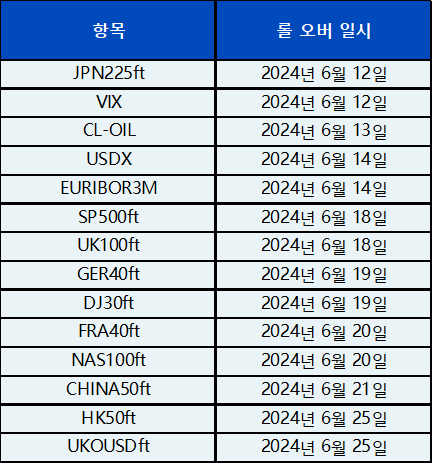 선물 계약의 롤오버 일정은 다음과 같습니다: